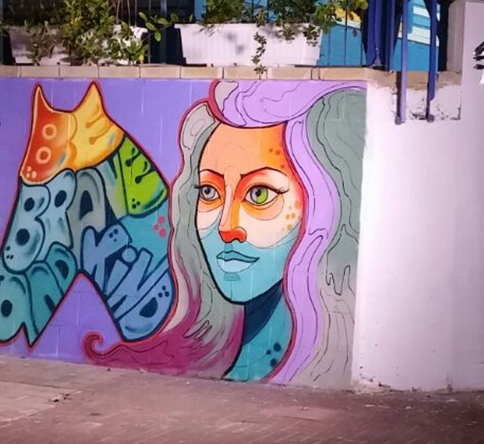 ציור הגרפיטי על קיר חצר בית הספר תיכון קלעי בגבעתיים, בו למדה יעלי.